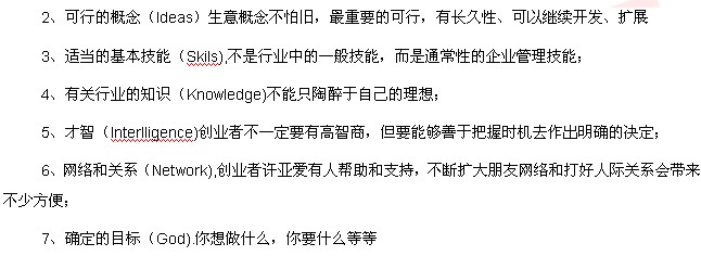 非常巧的是,將七個(gè)條件的首個(gè)英語(yǔ)字母串在一起,恰好串在一起,恰好是“RISKING”(冒險)一詞,這也反映出創(chuàng )業(yè)的風(fēng)險性。