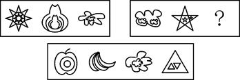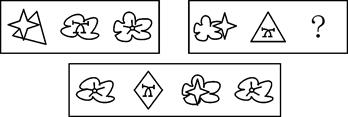 第二種題型:圖形推理。要求考生從四個(gè)備選答案中選擇最符合規律的一個(gè),替代題干中的問(wèn)號,使該組圖形呈現出與前一組圖形一定的規律性。
