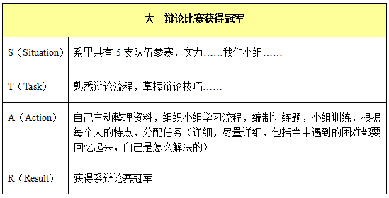 以上這個(gè)例子中,可以讓HR迅速了解你整個(gè)活動(dòng)的前因后果,同時(shí),也突出了你在這個(gè)活動(dòng)過(guò)程中的領(lǐng)導能力,溝通能力,主動(dòng)解決問(wèn)題的能力等等。