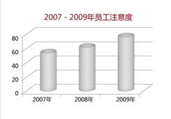 我們開(kāi)展了"2009年度員工滿(mǎn)意度調查",調查匿名進(jìn)行,問(wèn)卷調查共回收有效問(wèn)卷759份,員工滿(mǎn)意度逐年上升。